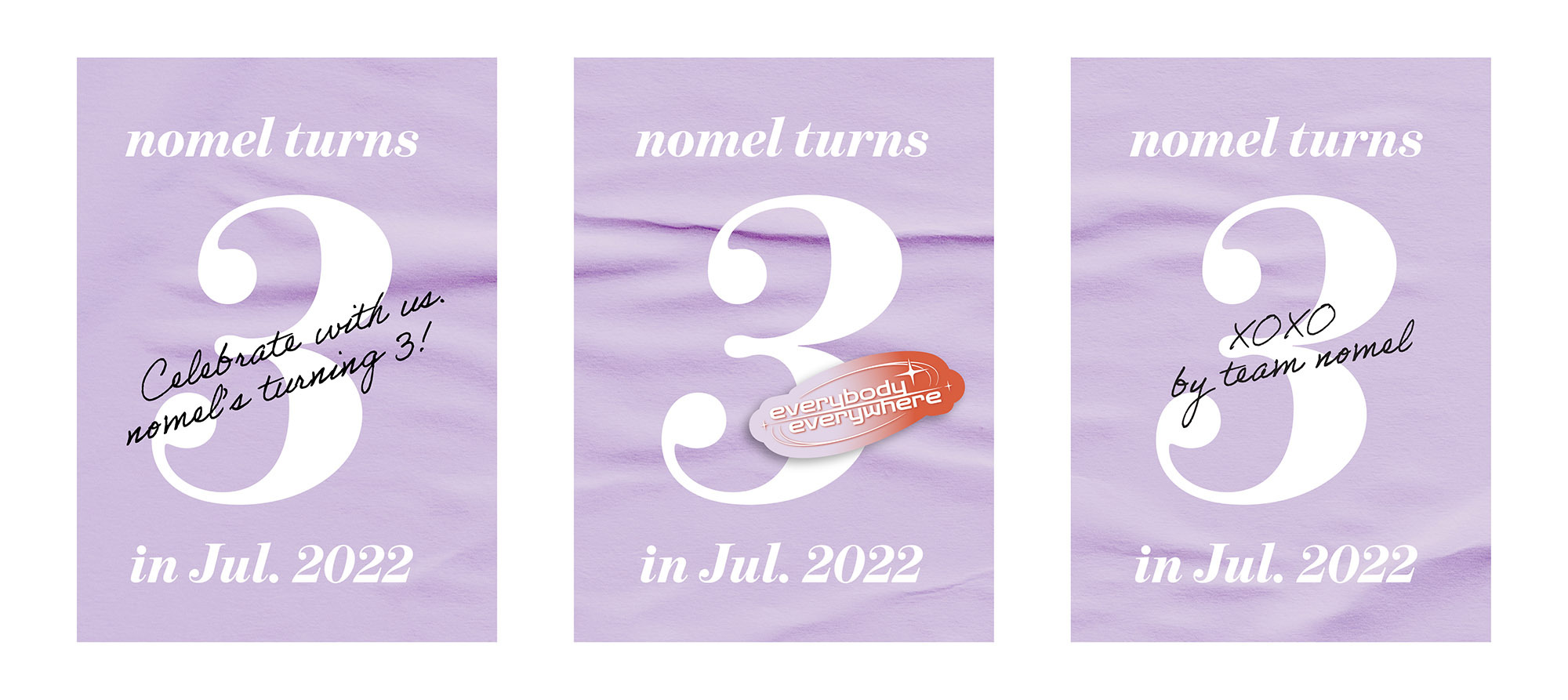 3週年對我們來說是像是立了一個穩定的根基,也代表 nomel 正在前往對的路途中。讓我們在這個特別的月份,回顧共同經歷的成就、跨越的障礙以及那些共度的開心時光;和 nomel 一起慶祝過去經驗賦予我們的養分,也開開心心的望向未來。