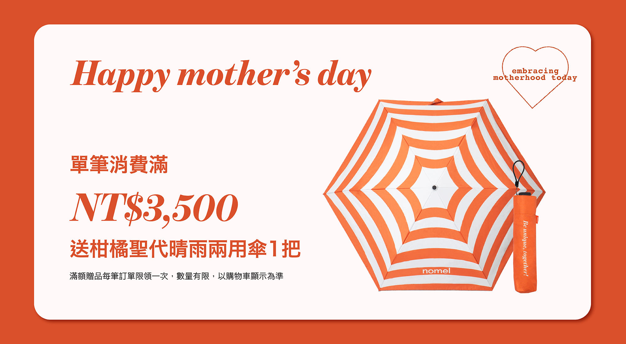 *本活動限直營通路訂單參加:nomelnomel.com、台北 Showroom 門市、新光三越台北信義新天地 A11 門市、新光三越台中中港門市