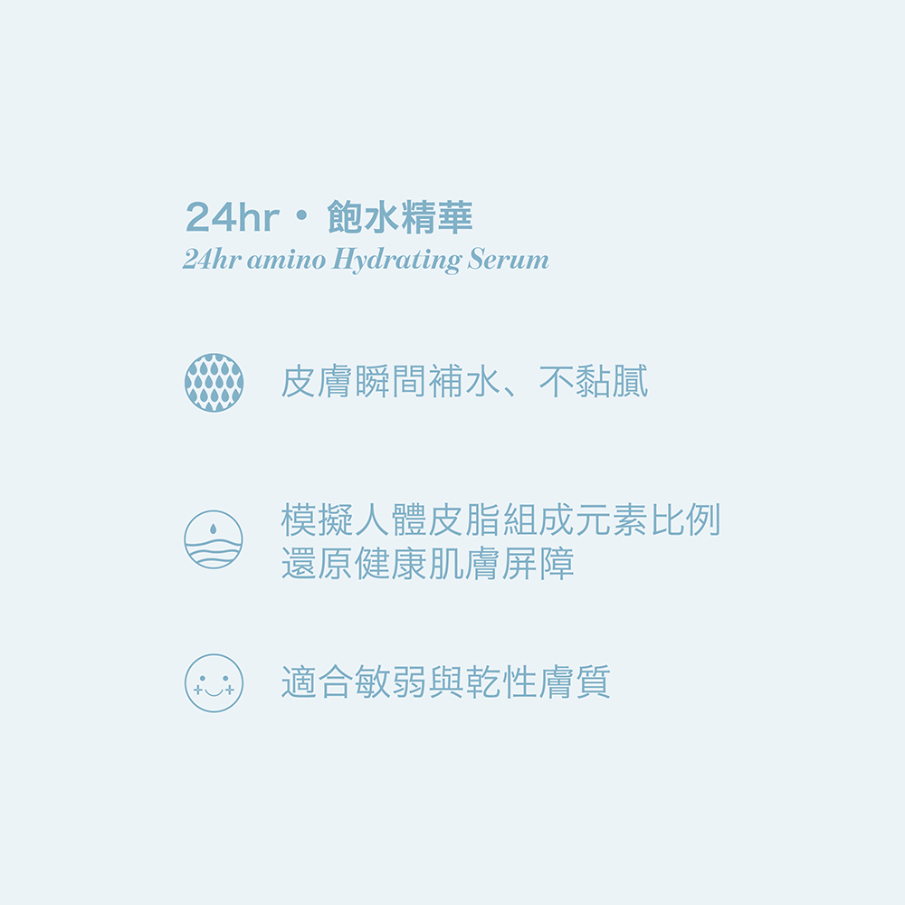 🔍複合式胺基酸(Complex Amino Acids)- 小分子保濕成份,親膚易滲透,迅速補充肌膚表面流失的天然保濕因子(NMF)。恢復肌膚補水力,緩解乾荒情況。