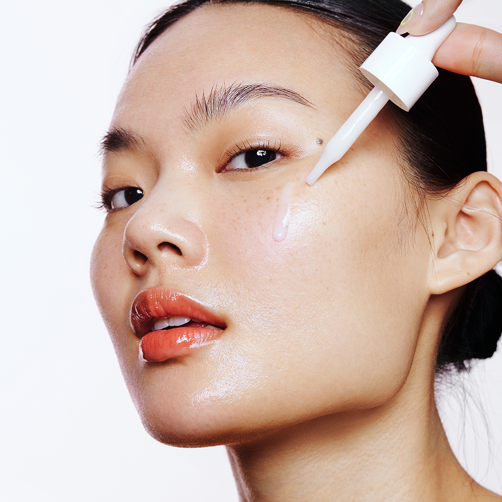 在每日清潔臉部與前導調理後,取3~4滴精華輕柔撫上雙臉,隨著手指由下往上提拉按摩至吸收,接著使用面霜、精華油完成每日保養步驟。(適量使用吸收效率更佳,若用量過多肌膚可能無法有效吸收造成殘留起削。)