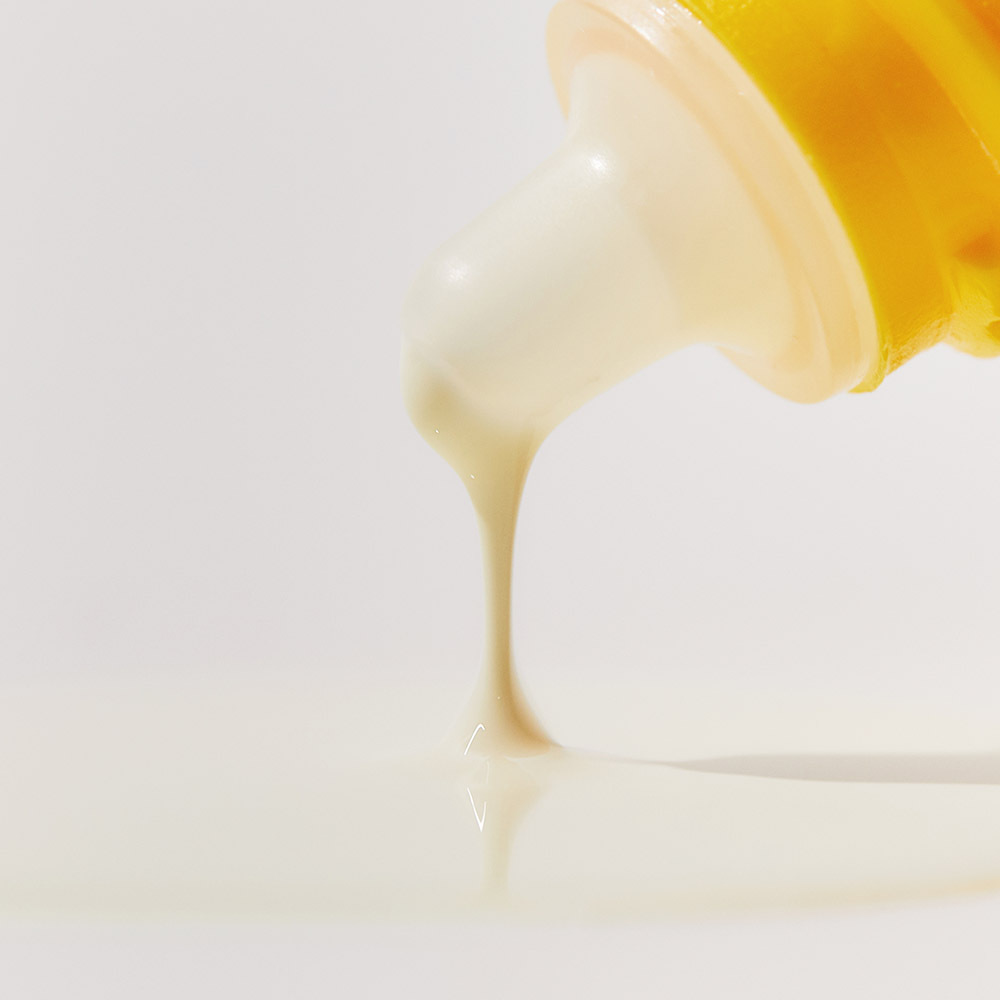 臉部清潔與基礎保養後,外出30分鐘前取用適量(全臉+頸部建議2.4ml)隔離乳,均勻塗抹於臉部和頸部。