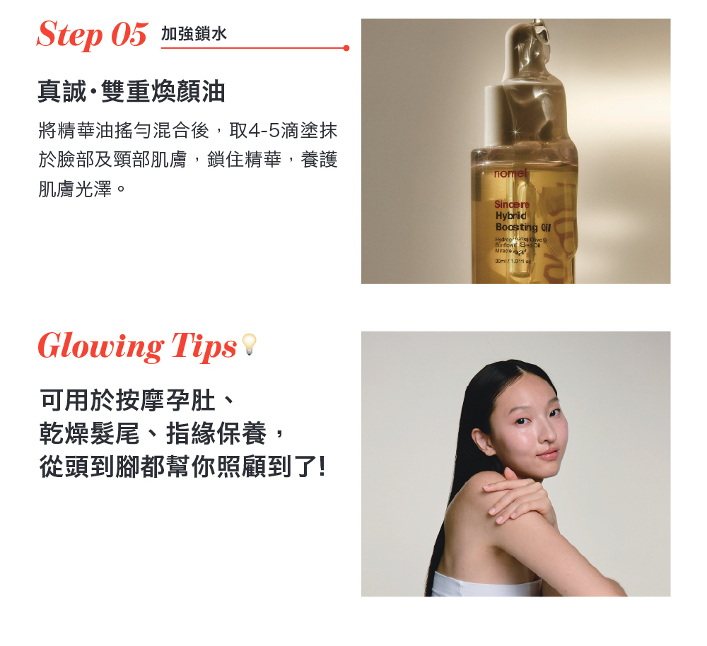 潤澤肌膚,有效鎖住水分與養分,散發自然健康光