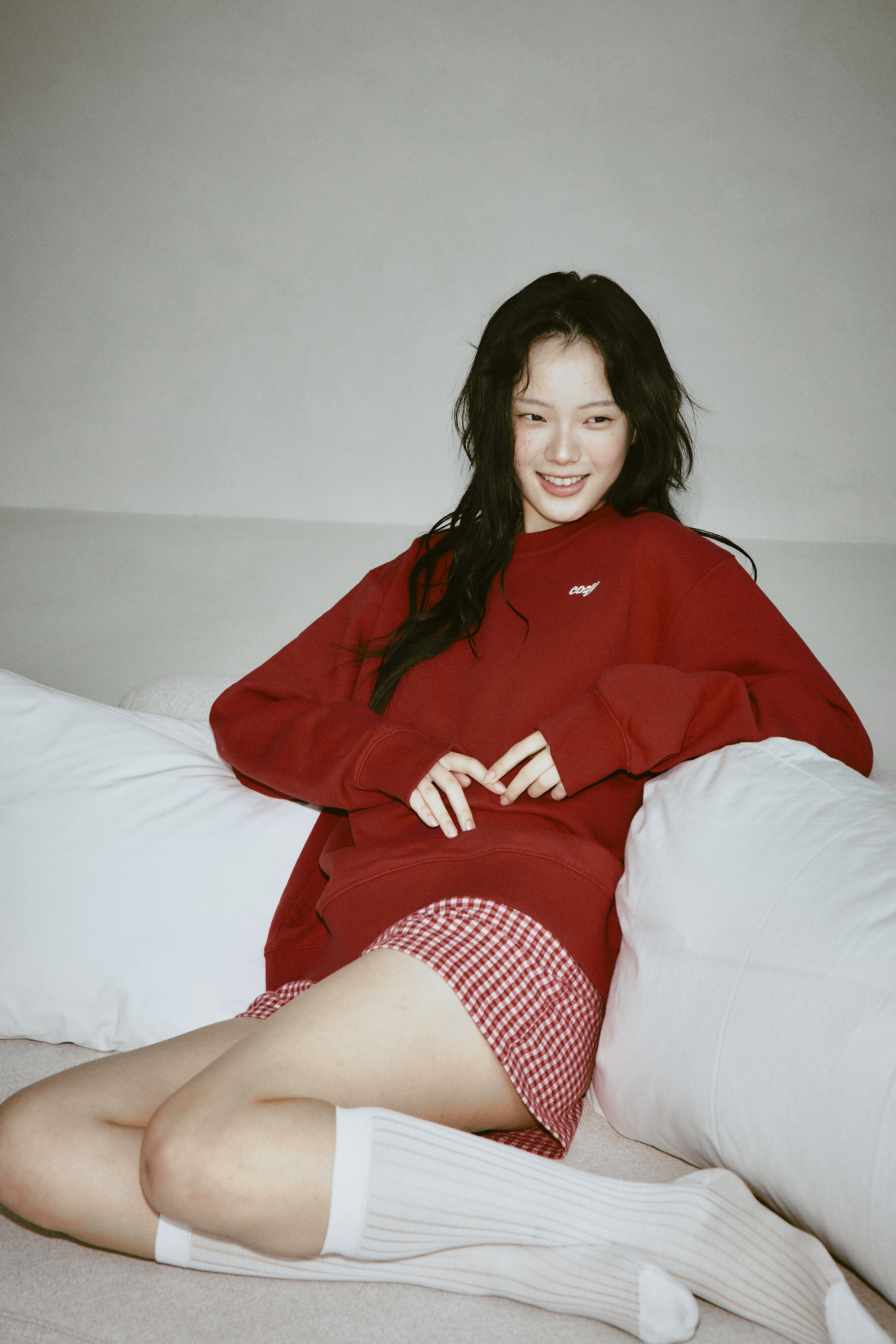 低調紅色面料上,以細緻白色刺繡點綴,勾勒出濃厚節慶氛圍。